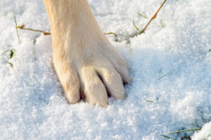 If you’re lucky enough that your dog has a lot of hair growing on his feet, you’ll want to trim back that hair to avoid getting ice and salt stuck in there and your dog licking and chewing to get it out.